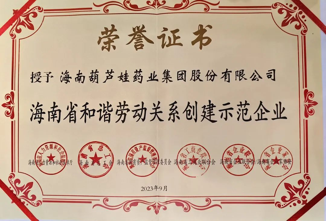 w66旗舰厅药业集团获评“海南省和谐劳动关系创建示范企业”